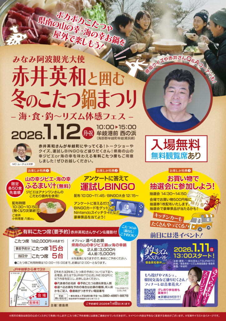 「みなみ阿波観光大使 赤井英和と囲む冬のこたつ鍋まつり- 海・食・釣~リズム体感フェス」を開催します!